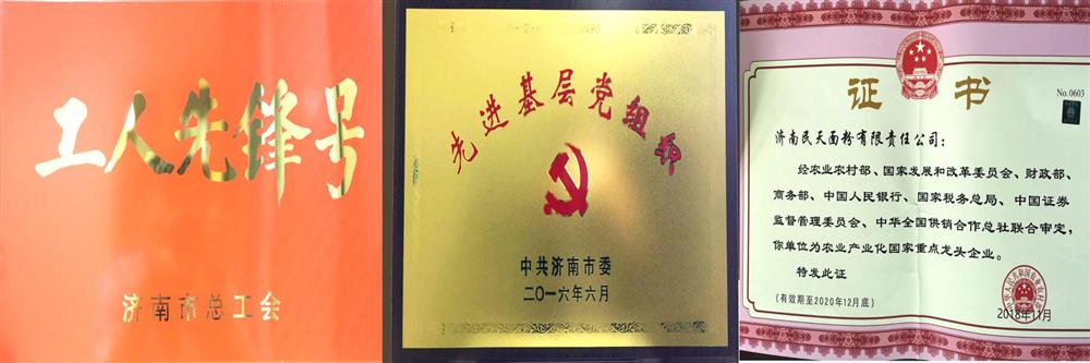 一粮库:师傅前锋号(山东市总商会 ,2019.2) 二、粮库:不断进步老前辈第一层党组成(党中央北京市委,2016.6) 第三点粮库:职工前锋号(山东市总总工会,2019.5) 民天工司:农产品加工牲畜化之地重中之重领先公司企业(农产品加工部,2018.11)