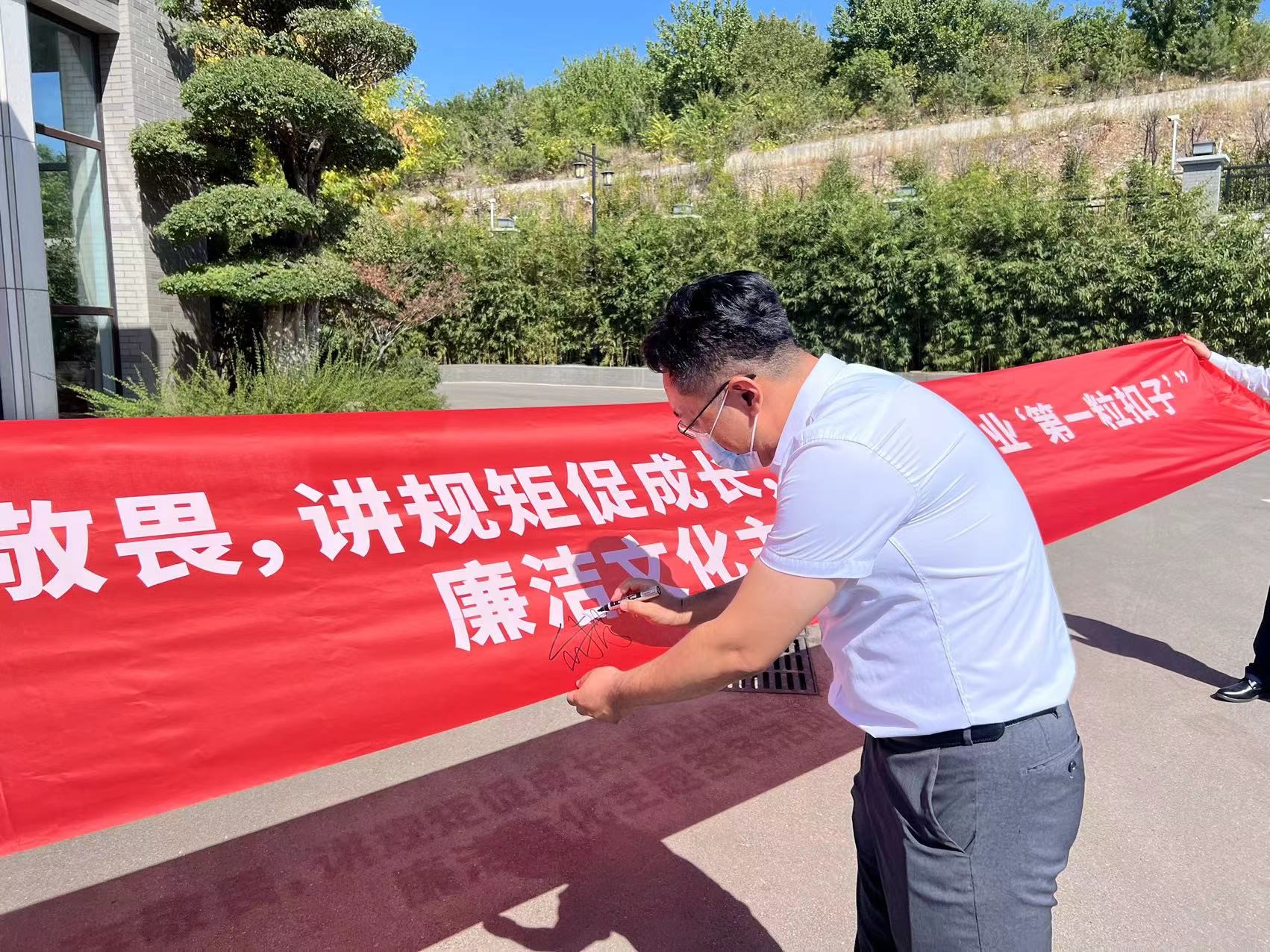 年轻漂亮机关人员在印满“守初忠存畏敬,讲端方加快长,扣好清廉就业‘1、粒扣子’”的清廉文朋宣传教会月核心条幅上妥当签了客观存在的品牌名称,描写出了固牢思惟思想品德防地、全面提升清廉自律意识认清的干脆努力。